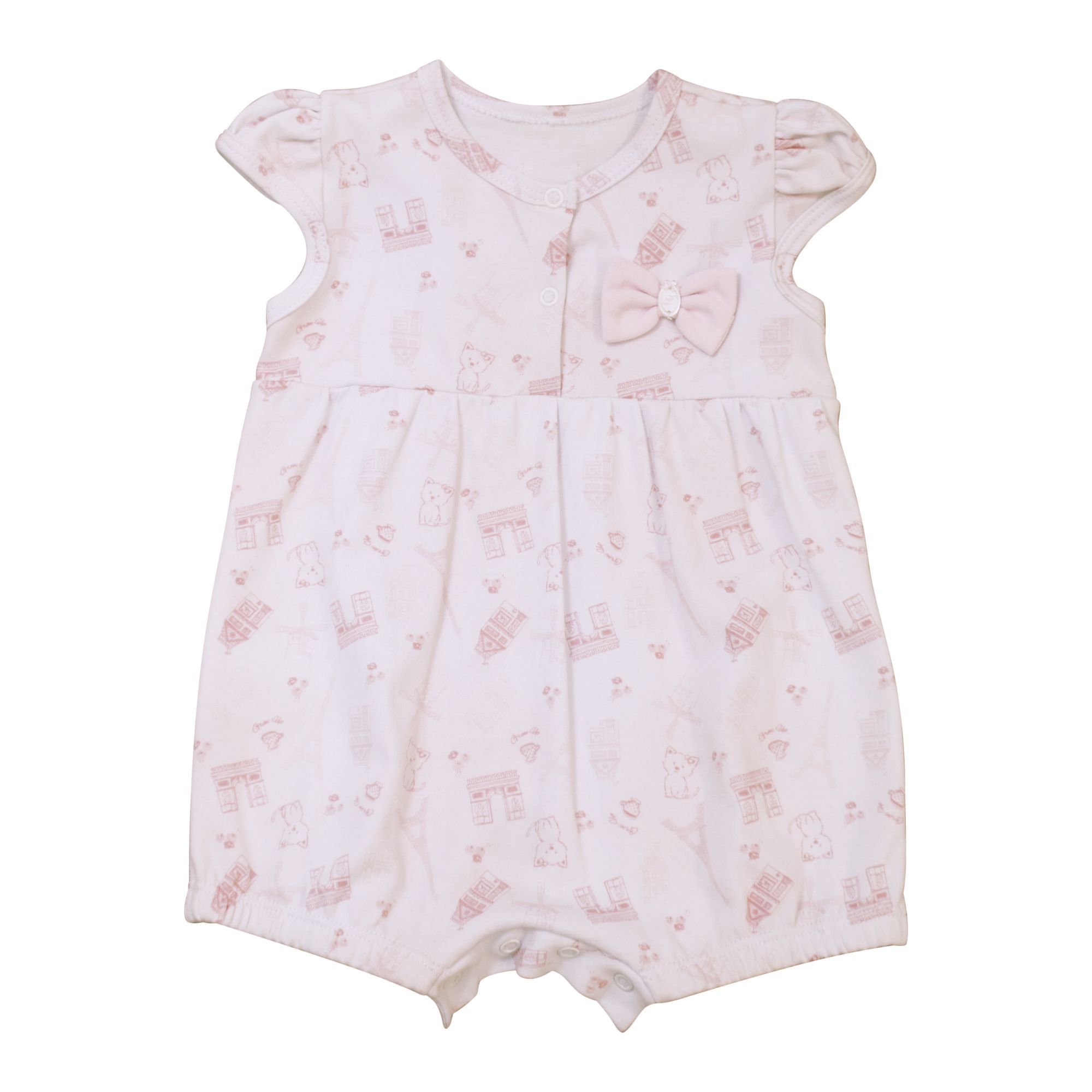 Banho de sol em suedine 100% algodão egípcio, rosa com estampa Paris, formado por torre Eiffel, gatinho na cor rosa. Manga estilo princesa. Decote redondo. Abertura superior com botões de pressão.detalhe frontal com laços rosa. Medalinha transparente personalizada. Caimento estilo balonet. Fechamento inferior com botões e elástico interno franzido.