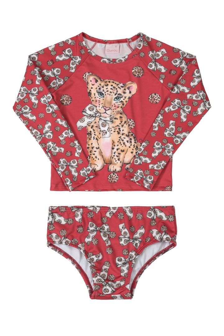 Conjunto de camiseta e biquini em malha poliester, tecido antimicrobiano.