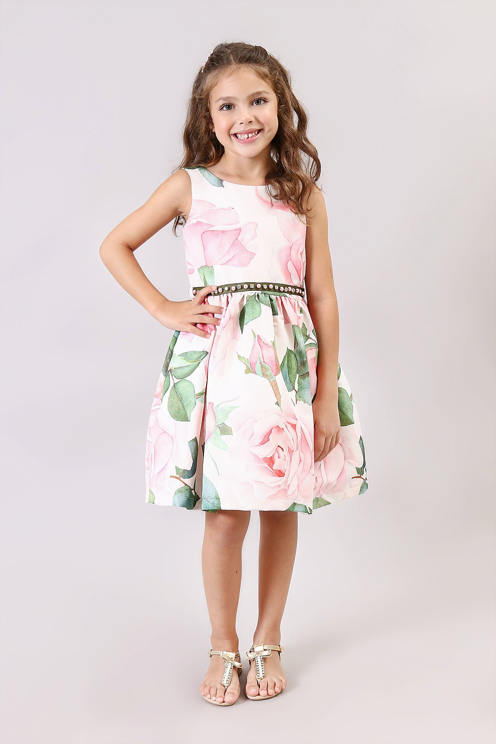 Vestido Bambollina Flores Cinto Pedraria